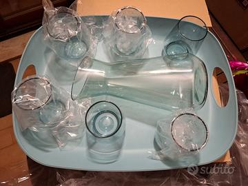 I bicchieri e la caraffa sono realizzati in Tritan, un materiale plastico noto per essere infrangibile e trasparente come il vetro.