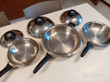 vendo set 3 padelle AMC quasi nuove. misure 32 la grande, 27 la media e 23 la piccola. vendo set completo