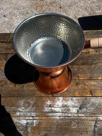 Set completo di paiolo e fornelletto in rame realizzato in rame per la preparazione dei Parampampoli, una famosa bevanda trentina!