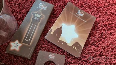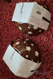 2 scodelle, una biscottiera, 2 fili luci, 1 segnalibro, 1 quaderno, 1 cartoncino non disturbare, tutto brandizzato PAN DI STELLE.