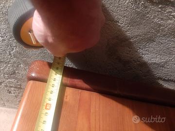 Set con due panche in legno con seduta apribile con piccolo contenitore. Dimensioni 147x46x82 cm e 87x46x82 cm.