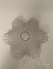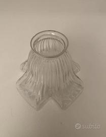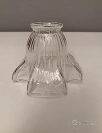 -N.1 Particolare paralume per lampada a tulipano in vetro trasparente. Vintage. Misura 14x14cm.circa. Misura altezza 10cm, Misura diametro attacco esterno 5,7cm. Misura attacco interno 4,7cm. Usato e vissuto ma in ottime condizioni senza graffi o rotture. Prezzo 20€.