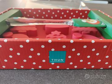 Set pasticceria con stampo in silicone di varie forme natalizie e leccapentole decorato con orsetto natalizio della THUN.