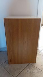 Design: Struttura interna e superiore bianca, ante con finitura effetto legno (rovere chiaro).