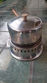 Set pentola fonduta bourguignonne con fornelletto ben tenuto con 18 spiedi