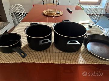 Set di pentole IKEA per piano a induzione, 7 pezzi, rivestimento antiaderente nero, 2 coperchi in acciaio e 1 in vetro. 1 anno di vita, vendo per cambio a piano cottura tradizionale. Ritiro di persona presso il domicilio.