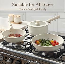 🔥Compatibilità totale: Induzione, gas, fornelli elettrici, ceramica, alogeni – questo set si adatta a ogni piano cottura.