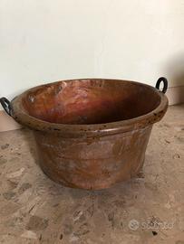 Antiche pentole originali in rame risalenti al secolo scorso, con bracere raro oltre che antico