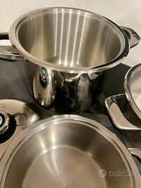 Pentole mai utilizzate,ci potrebbe essere qualche insignificante graffietto in quanto il materiale è riposto nei vani cucina senza imballi originali.