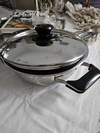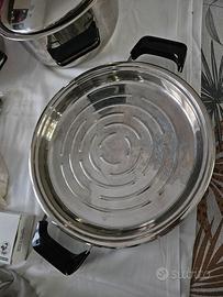 Set pentole IMCO nuovo, composto da 6pz incluse bistecchiera e pentola per cottura a vapore del diametro di 24cm; 4 coperchi; kit di ricambi;