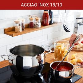 SET PENTOLE: Batteria di pentole Lagostina 11 pezzi composta da: pentole Ø 18 e 22 cm, casseruola fonda due maniglie Ø 18 e 22 cm, casseruola bassa due maniglie Ø 24 cm, casseruola fonda a manico lungo Ø 14 cm, bollilatte Ø 12 cm, coperchi Ø 14, 18, 22 e 24 cm