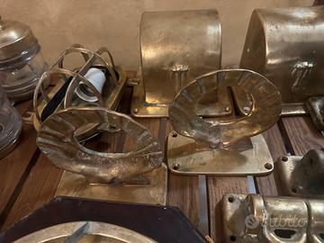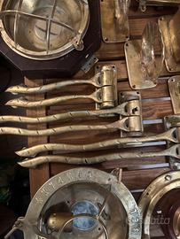 Vendo esclusivo set completo di accessori per due bagni in stile nautico originale, realizzati in ottone massiccio. Non si tratta di riproduzioni moderne leggere, ma di pezzi nautici pesanti e resistenti, ideali per un bagno di lusso in stile marina, casa al mare o yacht.