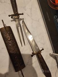 bellissimo set per barbecue, etnico , perfetto , forchettone più coltello per carne alla brace con custodia in legno
