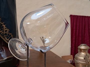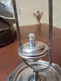 servizio per cognac composto da bicchiere in cristallo, appoggia bicchiere in silver con stoppino per riscaldare il liquore