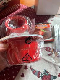 Piccolo set composto da bruciatore in ceramica con coperchio, candela, due forchettine. Cioccolato non incluso. Nuovo