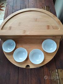 Vendo, per errato acquisto, due set per formaggi/salumi mai utilizzati, composti da tagliere in legno di bamboo, ciotoline e coltelli, ancora nella loro confezione originale, ad euro 20 caduno (euro 35 entrambi)