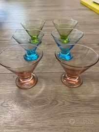 SET di 6 contenitori in vetro colorato per gelato o frutta NUOVI