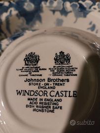 Set per macedonia o dessert inglese anni '50 Windsor Castle Johnson Brother. 1 ciotola da 23.5 cm è 6.5 cm di profondità, 6 ciotoline uguali di 13.5 cm e 3 cm di profondità