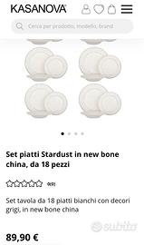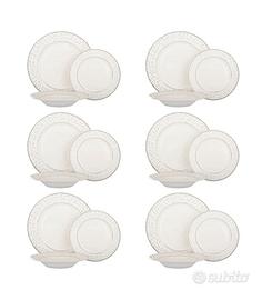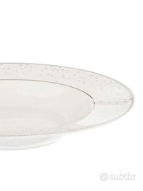 Vendo set piatti da 18 pezzi in new bone china, di colore bianco e impreziosito da un decoro a pois sul bordo.