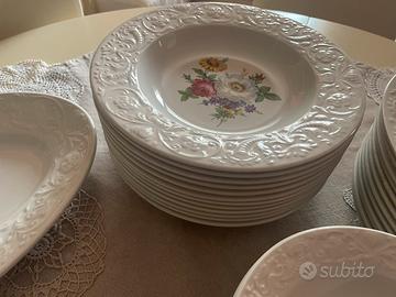 Raro set piatti Rinascimento Laveno , compisto da : 12 piatti fondi , 12 piani , 12 frutta e 12 ciotole + piatti portata . Per un totale di 50 pezzi . Ritiro a mano a Milano o spedizione accuratissima . Prezzo non trattabile . Stato del servizio eccelentev.