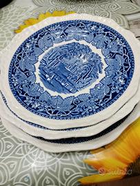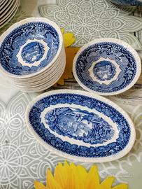 servito completo da 22 : piatti piani fondi,piattini più zuppiera, 2 insalatiere di diversa misura,2 vassoi ovali 1 più piccolo1 più grande (questo scheggiato sul bordo),un vassoio tondo grande ,1 vassoietto piccoli, 12 coppette per gelato o macedonia.