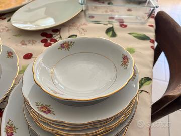 Set piatti in ceramica con bordo oro e fiori