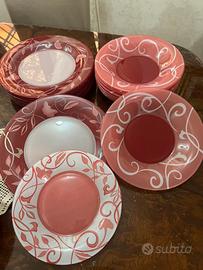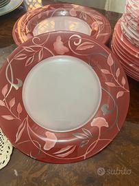 Set piatti in vetro Luminarc molto belli,adatti per il Natale ma anche tutto l’anno.Sono 12 piani 12 fondi e 12 piattini.