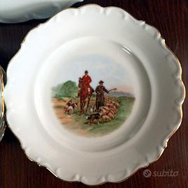 Set Piatti Porcellana Vintage Bavaria-Schumann "Caccia a Cavallo" (1 Grande e 6 Piccoli)