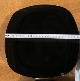 Set piatti quadrati. N 6 piatti piani neri e N 6 piatti fondi bianchi.