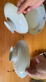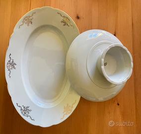 Serie piatti originali Richard Ginori con rifiniture in oro serie dell’immediato dopoguerra in ottimo stato di conservazione composta da : 22 piatti 2 alzatine 2 pirofile ovali Alcuni articoli presentano all’interno alcune piccole macchie, avendo paura di rovinarli con detersivi non adatti, si lasciano in presenza Ritiro e pagamento in Genova, data la delicatezza dei pezzi e l’ottimo stato di conservazione ritengo troppo rischioso spedirli