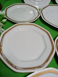 Presento un interessante Set di 11 piatti della prestigiosa Royal Tognana Porcella d’Italia, composto da 10 piatti Piani e 1 Piatto circolare di Portata. Sono tutti a forma ottagonale ed integri senza alcun alone o scheggiatura.