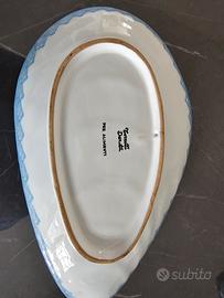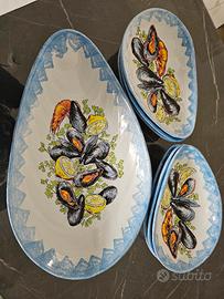 Piatti in ceramica artigianali Torretti Deruta a forma di cozza composto da centrotavola di cm 48 di lunghezza e n. 6 piatti di cm.28 x la tua spaghettata di pesce e non.Come nuovo