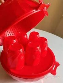 In materiale plastico per alimenti Composto da: 6 piatti fondi; 6 piattini; 6 piatti piani; 6 bicchieri; 1 scolapasta/insalatiera.