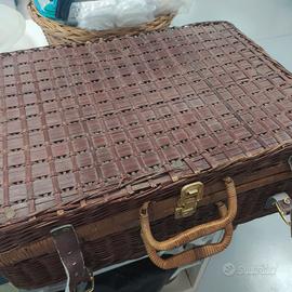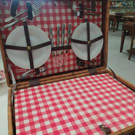 set per 4 persone nel cestino di vimini, unico difetto un segno di usura sul cestino come si vede in foto.