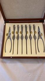 Elegante set da tavola per crostacei composto da pinze e forchettine per aragosta/granchio in acciaio lucido.