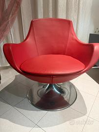 Vendo per inutilizzo set Poltrona e Puof in pelle rossa dei primi anni 2000. Piedistallo cromato e seduta comoda. Poltrina parazialmente girevole.