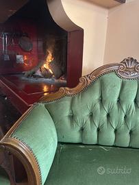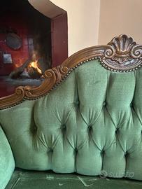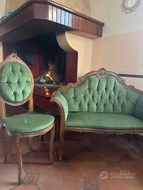 Set poltrona e due sedie in velluto verde e legno