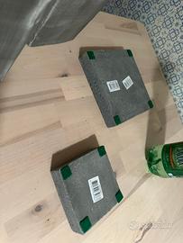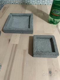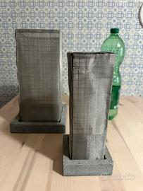 Set porta candele industrial alluminio e pietra peso totale kg. 2,572 altezza piccolo cm. 27 grande cm. 30 base larghezza piccolo cm.11 grande cm.18