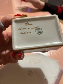 Elegante set limoges ,pezzo unico artigianale dipinto a mano, orefice Banfi. composto da un porta sigarette e due posacenere, tutti decorati con un motivo floreale rosa e dettagli in oro zecchino.