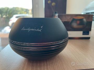 NUOVI MAI USATI E CONFEZIONE ORIGINALE Vaso e porta candele della collezione Manufacture Swirl di Villeroy & Boch, realizzati in vetro nero con finitura opaca e decorazioni a linee metalliche bronzo.