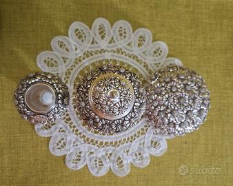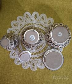 set composto da portagioie e due vasetti uno con coperchio e uno senza in laminato argento. Serie Margherite Stilarte