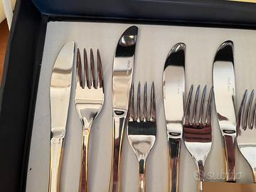 Vendo set di 75 posate Abert vintage, mai usate, in acciaio inox con finitura oro.