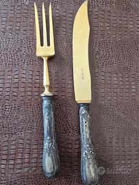 1 Set da pesce (grande forchettone a 3 punte e coltello) con bellissima finitura dorata e manici lavorati.