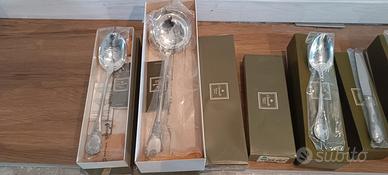 - 12 forchettine e 12 coltellini da frutta 3 posate da servizio (mestolo, forchettone e cucchiaio) nuovi, mai usati , alcune confezioni ancora sigillate.