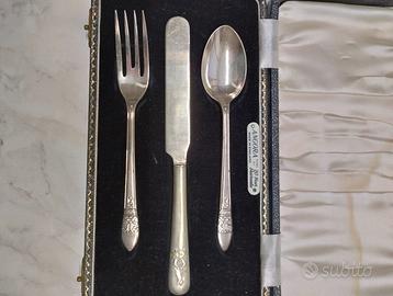 SET POSATE ARGENTATE, marchio ANGORA, made in england. Posate da dolce o frutta, mis posata 14,5, coltello mis 17, cucchiaio 14