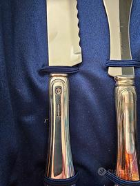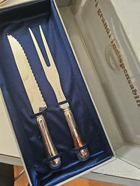 set da arrosto composto da un coltello e un forchettone, spesso utilizzato per tagliare e servire carne come arrosti o roast beef.
