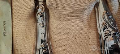 Set posate da dessert vintage placcate argento 800 lame in acciaio Solingen, in custodia originale. Set incompleto manca un coltello e la paletta!