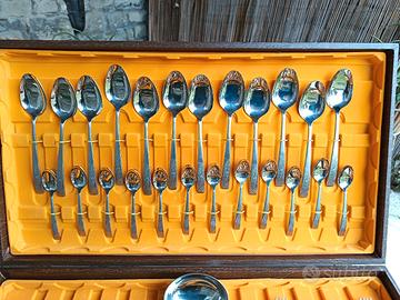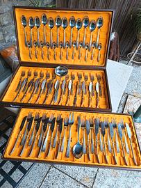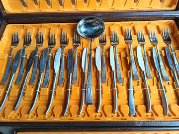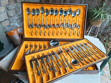 Set posate in acciaio inoxpran come un foto con valigetta in legno ( servizio completo per 12 persone) anni 70 mai usato