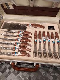 Set completo di posate e coltelli da cucina composto da 24 pezzi in pregiato acciaio inox in elegante valigetta, nuovo mai usato, ottima idea regalo