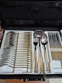 Acciaio inox 18 10 e oro 24 kt Nuovo mai usato con valigetta originale 79 pezzi Con certificato di garanzia